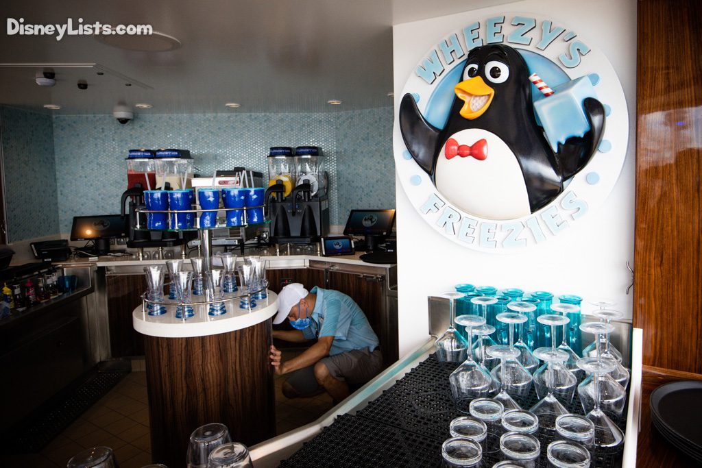 The Disney Wish also features new food and beverage options on the upper decks, including Mickey and Friends Festival of Foods — the perfect place for families to grab a quick bite for lunch, dinner, or anytime in between. This open-air eatery features five themed food stalls: Mickey’s Smokestack Barbecue, Donald’s Cantina, Daisy’s Pizza Pies, Goofy’s Grill, and Sweet Minnie’s Ice Cream. The whimsical design is inspired by the seaside boardwalk setting featured in popular “Mickey Mouse” animated shorts, a fitting addition to the Mickey and Friends-themed family district on the upper decks. We’ll give more details and our review of the dining when we cover family dining on the Disney Wish.
