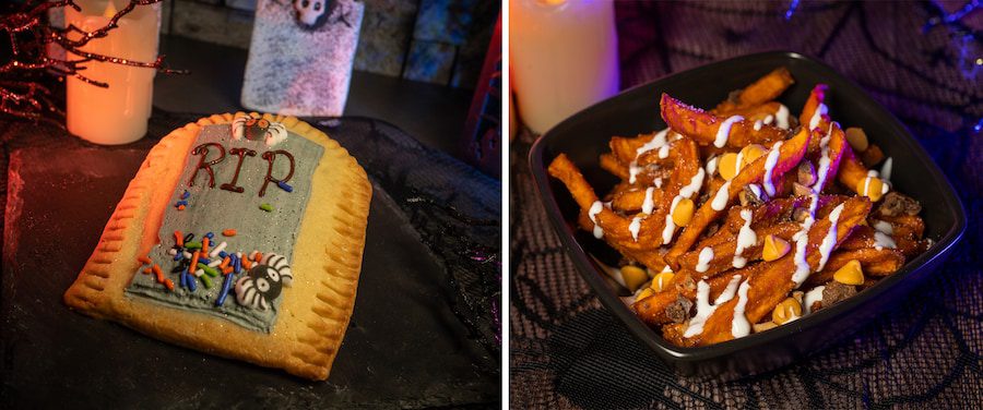 - Tombstone Tart: Flaky pastry filled with strawberry-jalapeño jam and topped with sprinkles and sugar spiders (New) (Available Aug. 11 through Nov. 1 during regular park hours and Mickey’s Not-So-Scary Halloween Party)