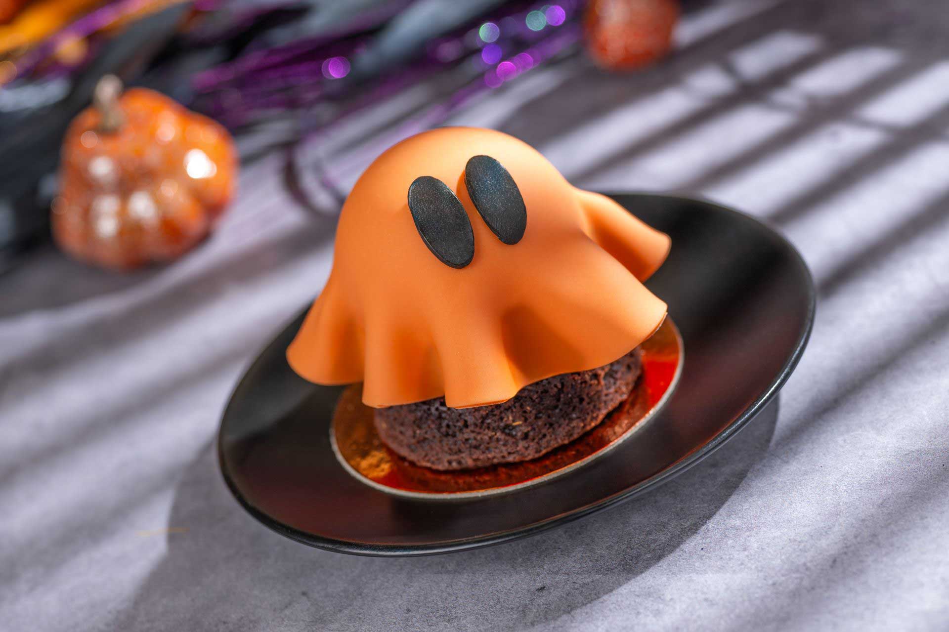 - Mickey Jack-o’-Lantern Cake Bar: Cinnamon sponge mixed with marshmallow mousse and chocolate ganache (New)