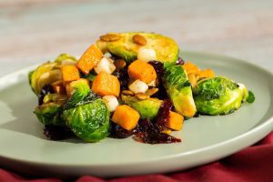 - Cast Iron-roasted Brussels Sprouts and Root Vegetables with dried cranberries, spiced pumpkin seeds, and pumpkin seed vinaigrette (Plant-based)