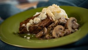 - Filet Mignon with mushrooms and mashed potatoes featuring Boursin Garlic & Fine Herbs Cheese