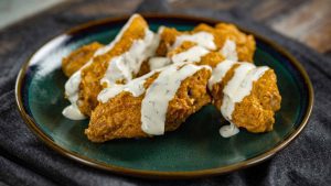- IMPOSSIBLE Chicken Tenders tossed in buffalo sauce with plant-based ranch and plant-based blue cheese crumbles (Plant-based)