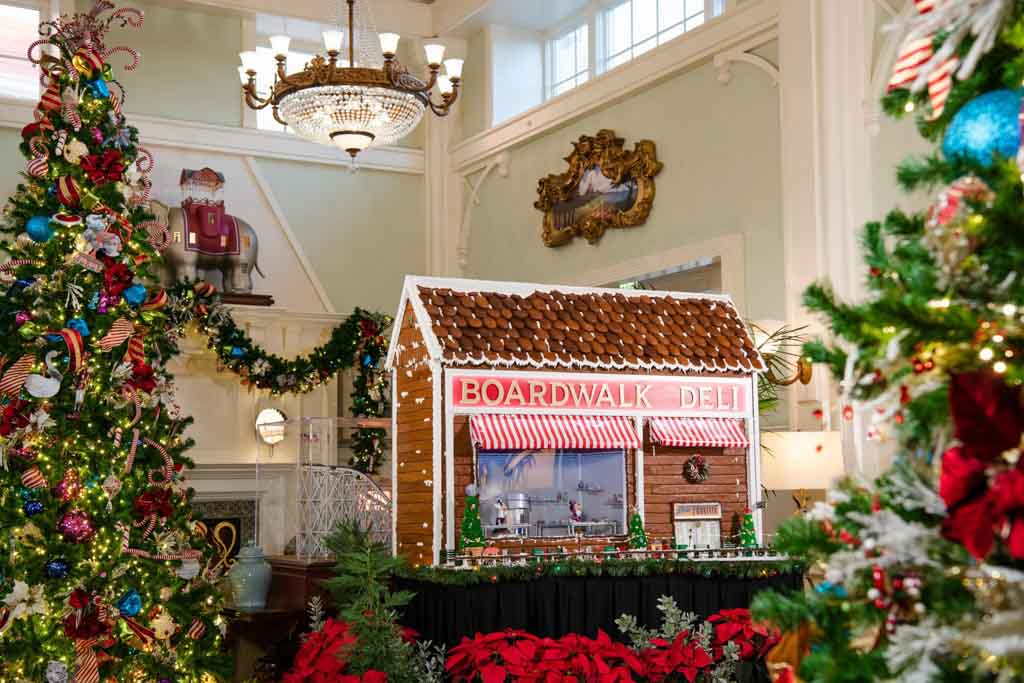 17 – The gingerbread display at Disney’s BoardWalk Inn features a gingerbread version of the BoardWalk Deli. Made with 21 gallons of honey, over 500 total pounds of flour and more, it took Disney bakers 200 hours to decorate.