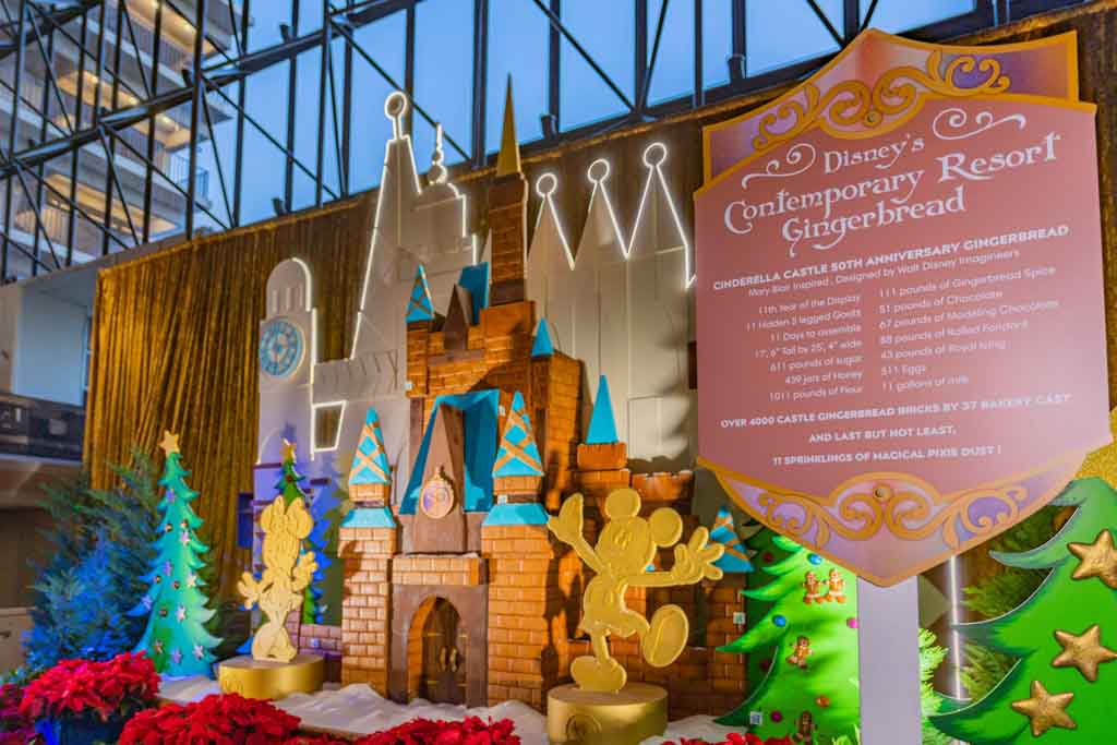 16 – Disney’s Contemporary Resort displays a 17-foot tall gingerbread Cinderella Castle decorated in celebration of the Walt Disney World 50th Anniversary celebration. The castle was built with more than 4,000 gingerbread bricks. Five-legged goats on the display are an homage to the towering mural in the resort’s Grand Canyon Concourse. Eleven goats represent the 11 years that the castle has been displayed.