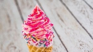 Shimmering Strawberry Soft-Serve in a Waffle Cone