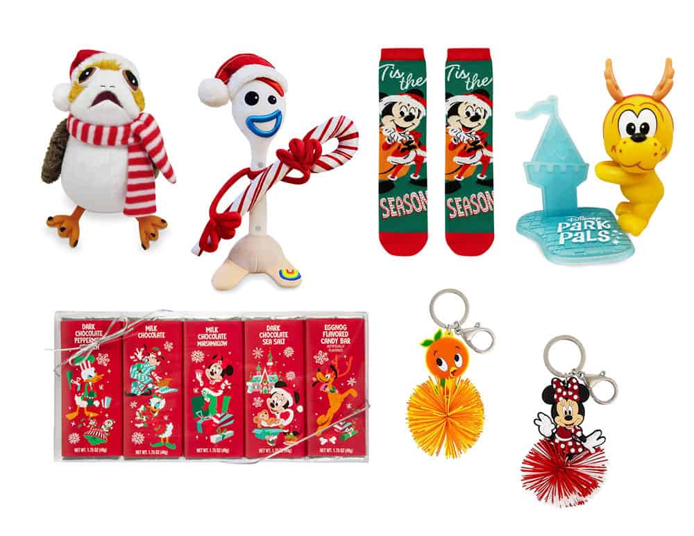 Don’t forget to fill everyone’s stockings with a little holiday Disney magic. Here are some of my favorite small finds that’ll be sure to put a big smile on someone’s face Christmas morning: Holiday Shoulder Porg, Holiday Forky Plush, Holiday Mickey Mouse Socks, Holiday Chocolate Bars Pack, Holiday Pluto Park Pal, and Minnie Mouse and Orange Bird Pom Keychains.