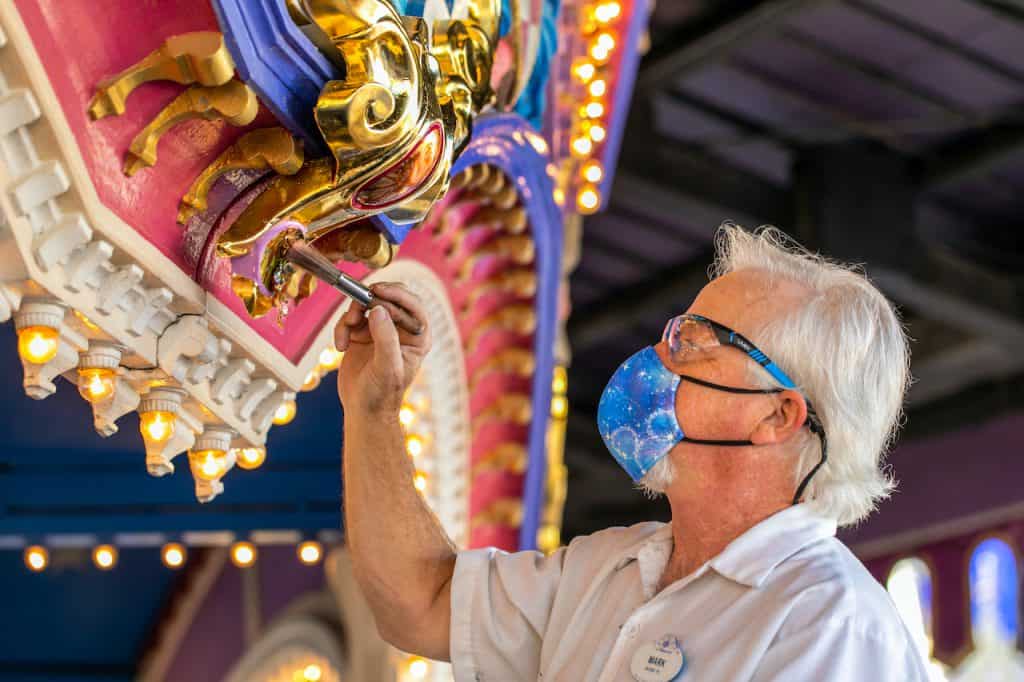 Outside of the world of merchandise, you may have noticed some other updates taking place around the park recently. Whether it be a freshly painted castle turret being adorned with 50th anniversary décor, or shimmering gold leaf being added to your favorite Fantasyland attractions, our cast members are hard at work making Magic Kingdom Park shine like never before. Be sure to keep an eye out for these enhancements and more in the coming months!