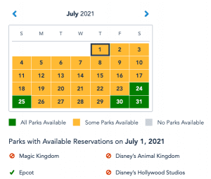 2 – Park Availability Update – June and July 2021 – Walt Disney World
