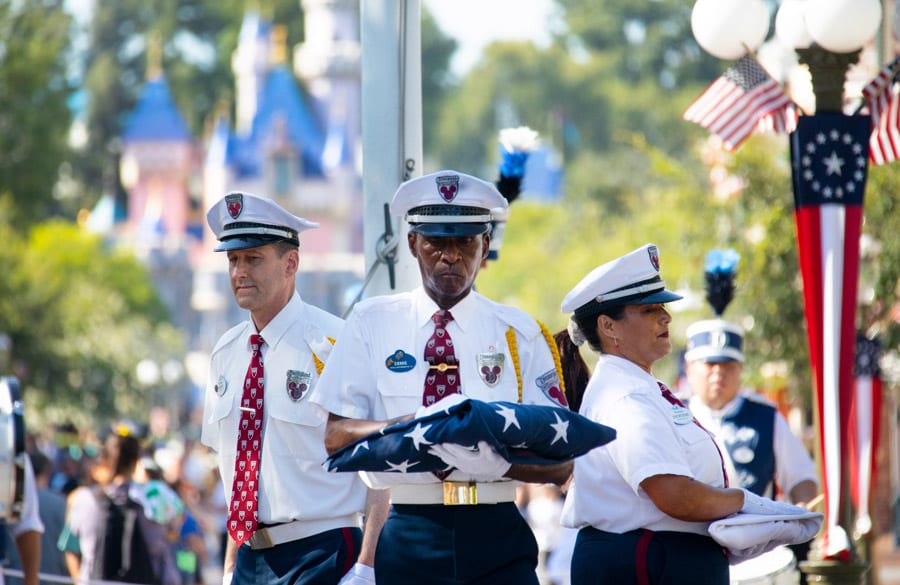 One of the most special events that takes place at both Walt Disney World and Disneyland Resort is the Flag Retreat. While the ceremony has been on hiatus during the phased reopening, the full ceremony is back! Here are all the details from Disney Cast Member Cappy Surette: