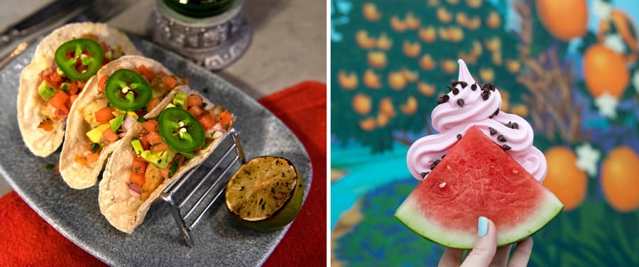 - Florida Shrimp Tacos with Watermelon Salsa – Jerk-spiced shrimp served in a grilled corn tortilla with watermelon pico de gallo