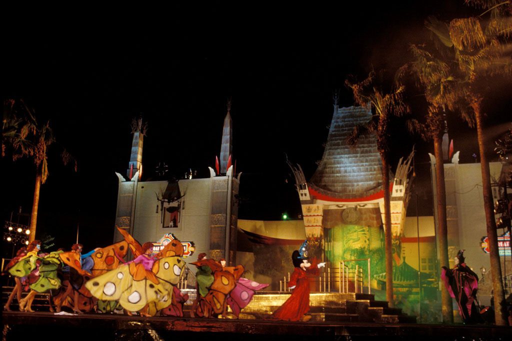 Initially planned to be a pavilion offering guests a “trip through the movies” at EPCOT Center, Disney-MGM Studios opened as Walt Disney World’s third theme park (and an operating movie studio) in 1989 after a deal was struck with Metro-Goldwyn-Mayer allowing Disney to license the MGM name, logo, and films including The Wizard of Oz and Singing in the Rain. This new park originally allowed guests an opportunity to explore Hollywood and moviemaking both from the perspective of a filmgoer and from a backstage perspective. In the first year of operation, guests could travel into the movies on The Great Movie Ride, housed in the famed Grauman’s Chinese Theater; see how stunts were choreographed at the Indiana Jones Epic Stunt Spectacular; and witness firsthand the creation of hand-drawn animation, movie sets, props, special effects, and costumes during the multi-hour Backlot Studio Tour. The magic made at this third theme park didn’t make it difficult for guests to use their imagination in entering “the magical journey into the movies…the stuff dreams are made of.”