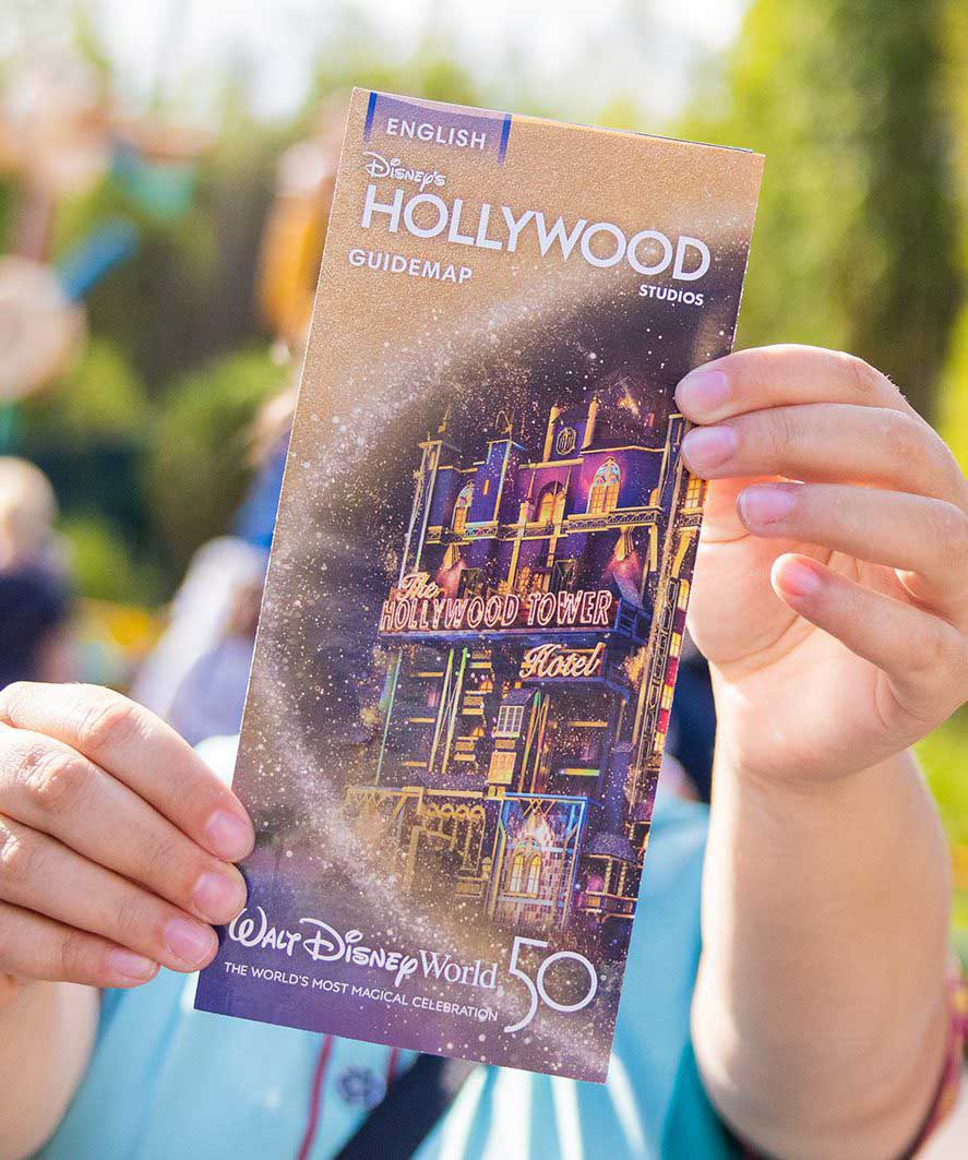 During your next visit, pick up a special edition park guide map created for the 50th anniversary celebration. The Disney Hollywood Studios guide map features the Hollywood Tower Hotel on the cover and includes great information on all of the celebratory food and beverages, special merchandise and more!
