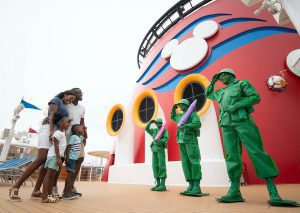 Get ready for fun character sightings throughout your cruise – whether it’s Goofy making a special appearance in the Walt Disney Theatre, princesses greeting your family in the atrium or the Green Army Patrol roaming the upper decks, your favorite Disney friends will appear in unexpected places aboard the ship … and even on Castaway Cay!