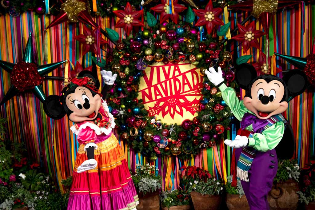 - Festival of Holidays comes alive with “Disney ¡Viva Navidad!” as Disney characters host a fun street party along with Mexican folklórico dancers and Mariachis, Brazilian samba dancers and percussionists, giant mojiganga puppets and Mickey Mouse and Minnie Mouse in their fiesta best.