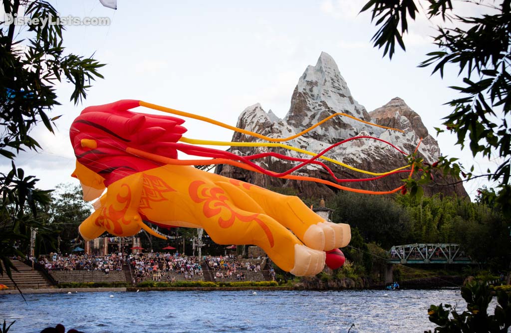 New daytime entertainment is at Disney’s Animal Kingdom Theme Park, as “Disney KiteTails” comes alive several times daily at the Discovery River Theater. Performers fly windcatchers and kites of all shapes and sizes, while out on the water elaborate three-dimensional kites – some stretching to 30 feet long – depict Disney animal friends, including Simba, Zazu, Baloo, and King Louie. These colorful creations dance through the sky to the beat of favorite Disney songs in an uplifting, vibrant experience for the whole family. The shows are approximately ten minutes, however, Disney recently announced that coming “soon” guests can check out the kites all along the Discover River “with shorter and more frequent performances throughout the day.” Check the My Disney Experience app for showtimes.