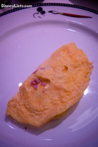 The breakfast menu had a lot of variety and options for guests. We were first offered different pastries, muffins, croissants, and other bread items. Fruit, yogurt, and an oatmeal option are also available. As you would expect, eggs, omelets, a breakfast burrito, and plenty of sides are on the menu. There are also options like pancakes, French Toast, and Mickey Waffles hot off the griddle. You can get oatmeal or Cream of Wheat. There are three signature breakfast options, one of which is plant-based.
