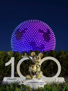 Have you taken a selfie with any of the Disney100 backdrops located at all four theme parks and Disney Springs? You’ll be able to snap a photo with a new platinum Mickey Mouse sculpture in World Celebration with Spaceship Earth in the background. And don’t forget about the dazzling Disney100 Magic Shots and PhotoPass offerings currently available across Walt Disney World.