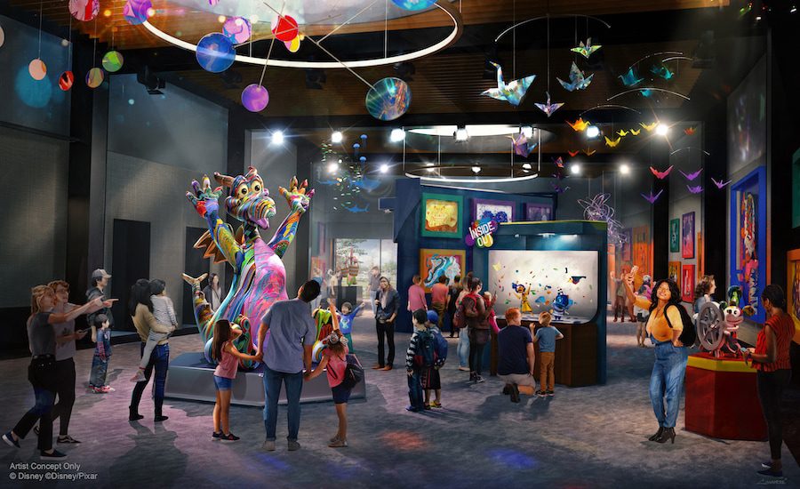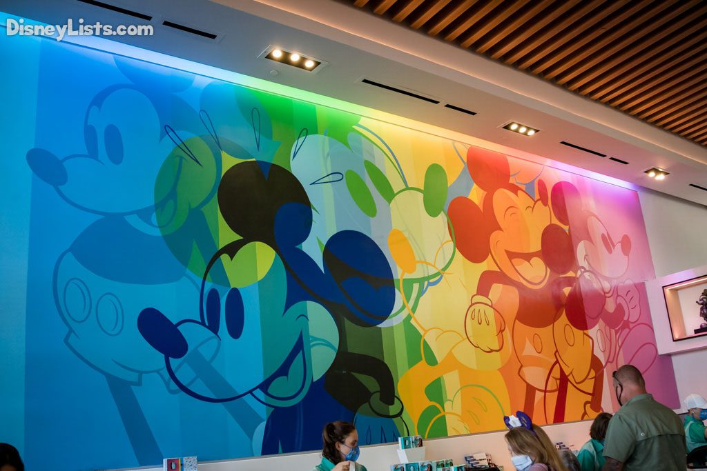 Creations Shop invites guests to explore and celebrate Disney creativity, inspired by Mickey Mouse. The merchandise location features a bold, sleek design for an open, bright, welcoming environment with large glass walls allowing sunlight to pour in. Artistic homages to Mickey are throughout the shop, including large, dynamic murals that tap into the park’s original artistic spirit.