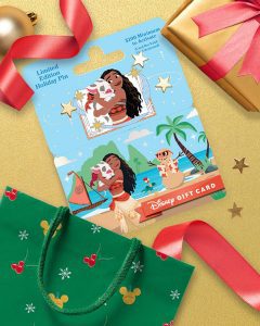 This year’s all-new Disney Gift Card Holiday Pin Series designs include a variety of classic Disney characters and fan-favorites that your loved ones will adore. The limited-edition holiday Disney pins feature these characters coming to life from their storybook tales – Mickey Mouse with Minnie Mouse and Donald Duck with Daisy Duck exchanging gifts, Moana, Pua and HeiHei celebrating on the beach, and Princess Tiana and Prince Naveen enjoying winter fun in front of Tiana’s Palace.