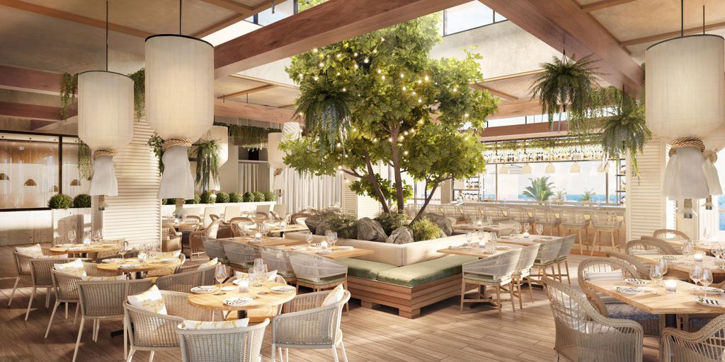 Designed in collaboration with renowned architecture and design firm Rockwell Group, Summer House seamlessly blends indoor and outdoor dining with three bars and an airy, natural light-filled dining room centered around a lush tree reaching up to a skylight. Offering sweeping views and a relaxing breeze from Lake Buena Vista, Summer House strives to make every dining experience a memorable one, a commitment demonstrated by another focal point of the dining room – the restaurant’s trademark bright blue “YES” sign.