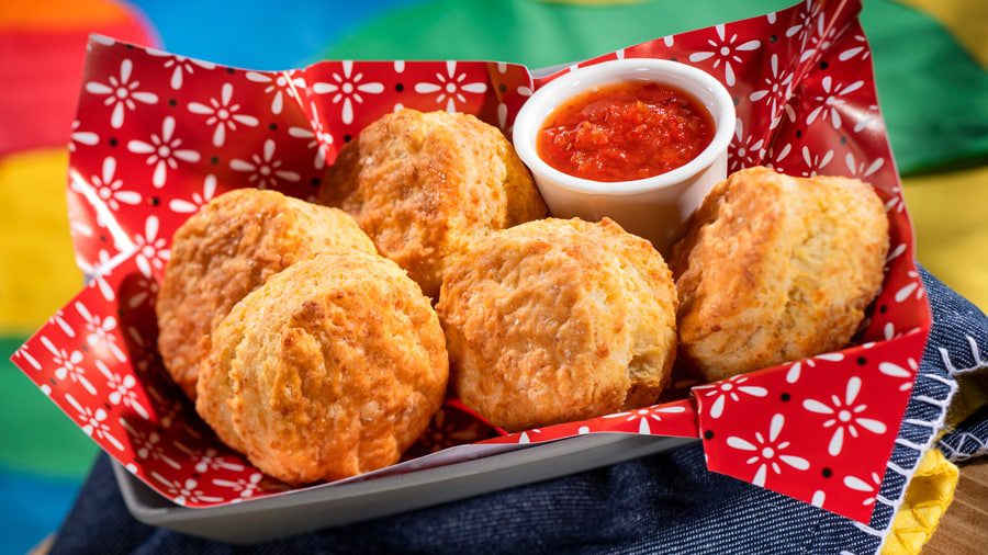 Happy anniversary to Roundup Rodeo BBQ in Toy Story Land at Disney’s Hollywood Studios! March 23, marks one year since the opening and to celebrate, we’re sharing an exclusive, fan-favorite recipe with you – The Prospector’s Homemade Cheddar Biscuits with Sweet Pepper Jelly.