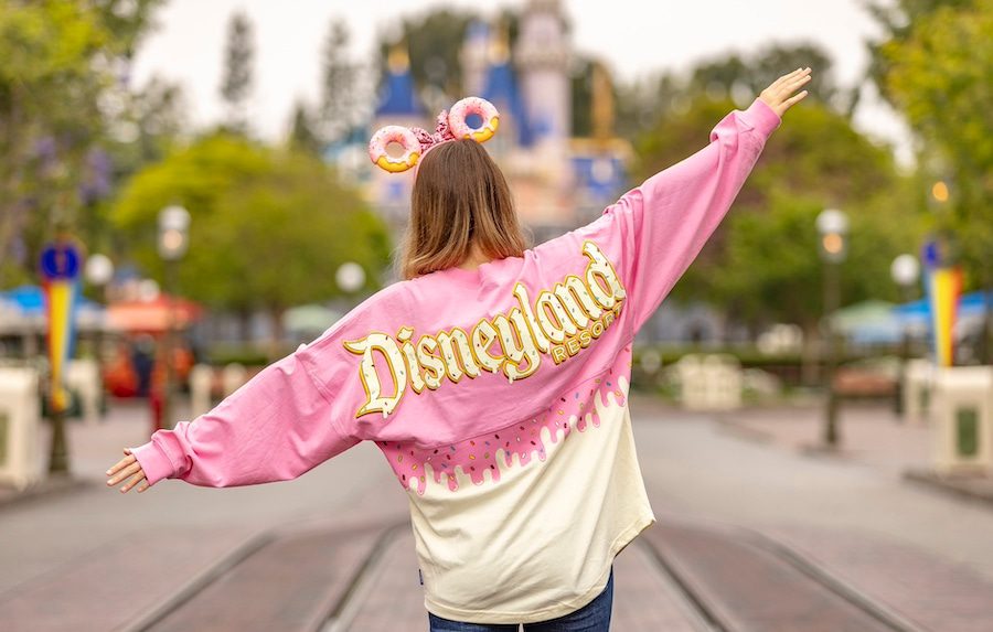 The donut themed Spirit Jerseys will be popping in Walt Disney World and Disneyland Resort styles. With the Disney Parks logo on the front sparkling with glitter and covered with sprinkles full of sugary sweetness, this spirit jersey is the perfect pairing to the Donut Minnie Mouse Ears.