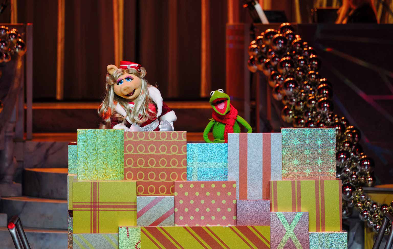 Stepping into the spotlight as your hosts, Kermit the Frog and Miss Piggy are ready to put on a spectacular show featuring special appearances from beloved Disney characters like Tiana, Belle, Minnie Mouse, and Mickey Mouse performing to holiday hits that will leave you humming and dancing long after the curtain falls!