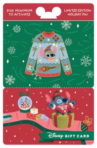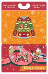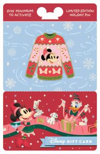 Each gift card, sold separately with a minimum activation of $125, comes with a complimentary Disney Trading Pin – a snug sweater featuring classic Disney characters.