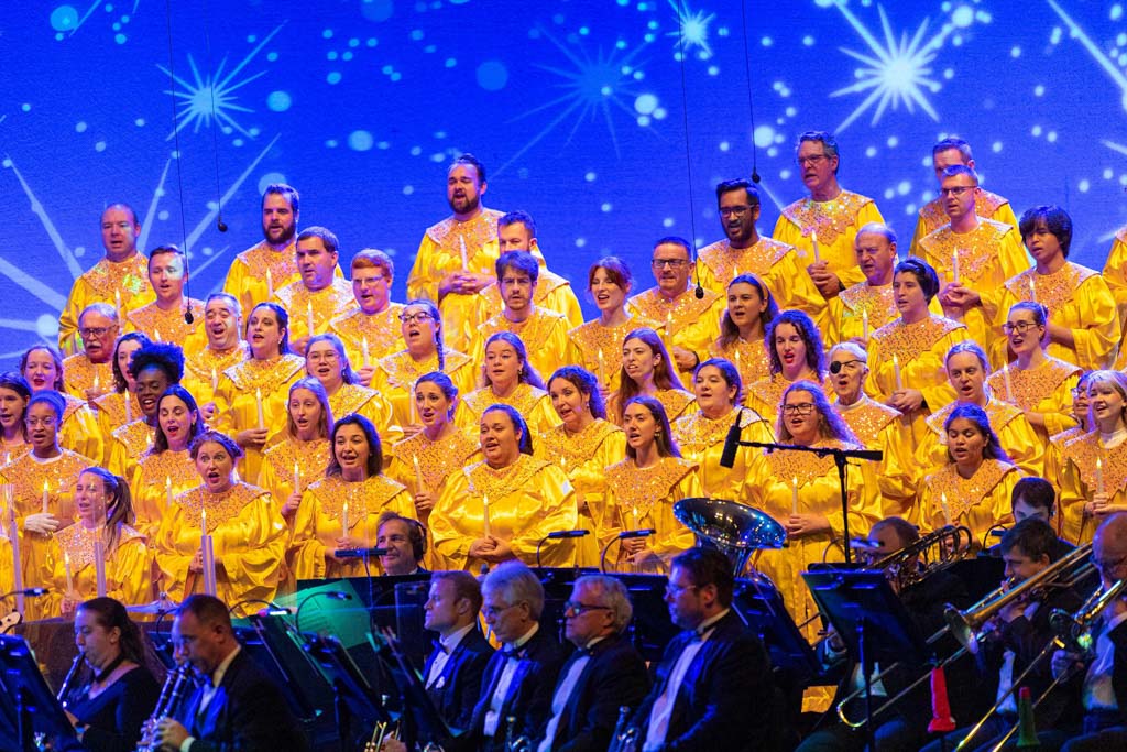 - Sing along with a glorious mass choir, a 50-piece orchestra, herald trumpets, and the Voices of Liberty during the Candlelight Processional at America Gardens Theatre. This year, the fan-favorite tradition welcomes new narrators Nico Santos, Ralph Macchio, and Titus Burgess to the stage, plus a variety of award-winning actors, singers, and television personalities.