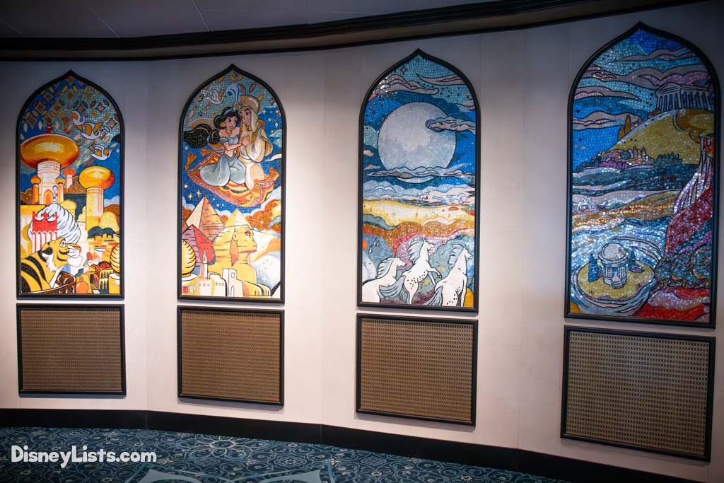 The Grand Hall is the heart of a Disney Cruise Line ship, and every space is unique. On the Disney Treasure, the Grand Hall embodies the ship’s theme of adventure, with statues and décor that call on the gilded palace and wonder of Agrabah from Walt Disney Animation Studios’ classic tale, “Aladdin.” The space is beautiful, and we enjoyed sitting for a while and enjoying our surroundings. The Grand Hall serves as the ship’s most prominent gathering space and offers its own dedicated entertainment moments and surprises.