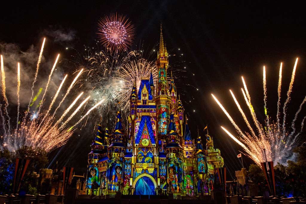 The fireworks spectacular Happily Ever After at Magic Kingdom Park takes guests on a dazzling journey of color, light, and song that captures the heart, humor, and heroism of favorite Disney stories.