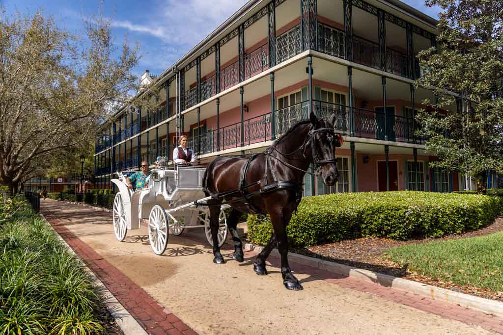 Carriage Rides: Few things are as romantic as riding in a horse-drawn carriage. Guests will find carriages and coachmen ready to take them on delightful rides through the rustic beauty and charming pathways at Disney’s Port Orleans Resort or the lush forests and trails at Disney’s Fort Wilderness Resort & Campground. The 25-minute ride is perfect for adults and children. Pricing information and reservations are available by calling 407-WDW-PLAY (939-7529). Same-day walk-ups are available on a limited basis.