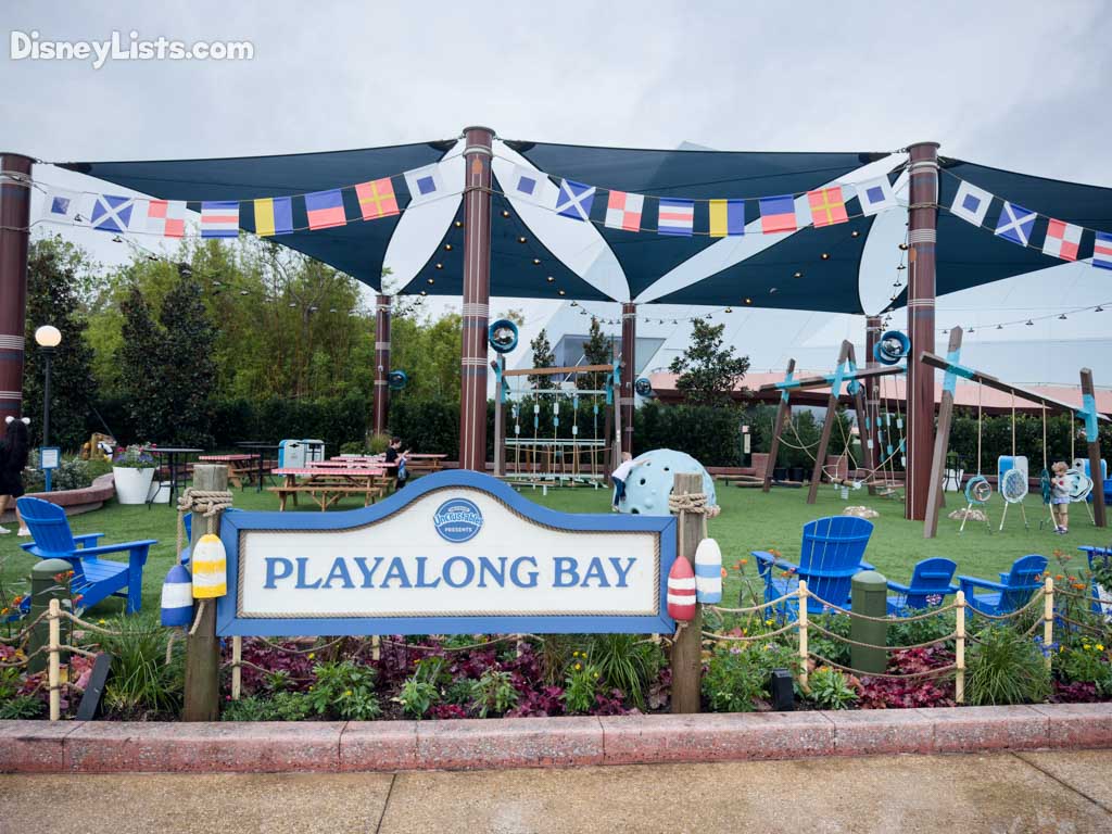A new play area that is sure to be popular is the new Playalong Bay Play Garden presented by Smucker’s Uncrustables. This new nautically inspired playground pays homage to both Disney’s Beach Club and Disney’s Yacht Club Resorts, offering fun and a bit of relaxation for the whole family. The play area is located between the Imagination! pavilion and the entrance to World Showcase. It’s perfectly located between the two new outdoor kitchens with menus full of seafood goodness: Yacht Grub and Beach Grub. These Outdoor Kitchens feature food and beverage items inspired by beach life, like coconuts, sparkling drinks, and light bites.