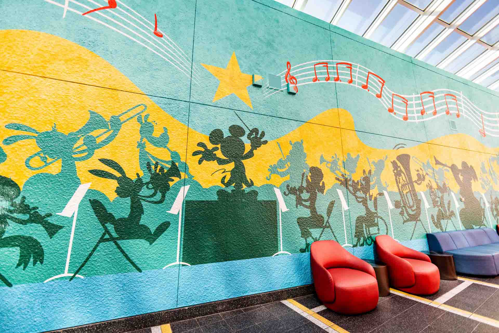 “The mural designs have so much whimsy and humor injected into them. You can’t take a few steps without finding a new funny gag moment,” shared one of the Disney Imagineers behind the project.