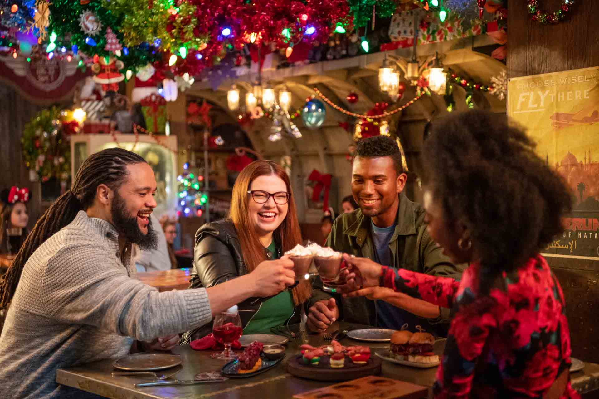 As the story goes, Indiana Jones and his easygoing pilot Jock Lindsey stumbled on Disney Springs in 1938 while chasing down a mythology-based tip in central Florida. Before long, this home base became a popular stopover and watering hole for world travelers and locals alike, full of dusty mementos of glorious holidays gone by. Today, thrill-seeking families soak up the rugged charm of Jock Lindsey’s Holiday Bar, with its spare airplane parts, salvaged equipment and plenty of holiday decorations.