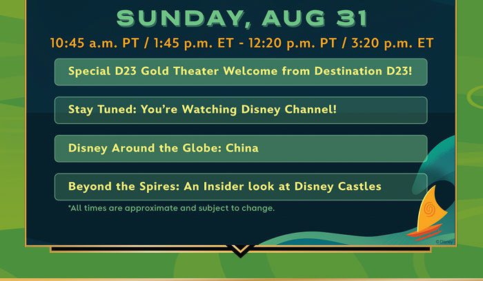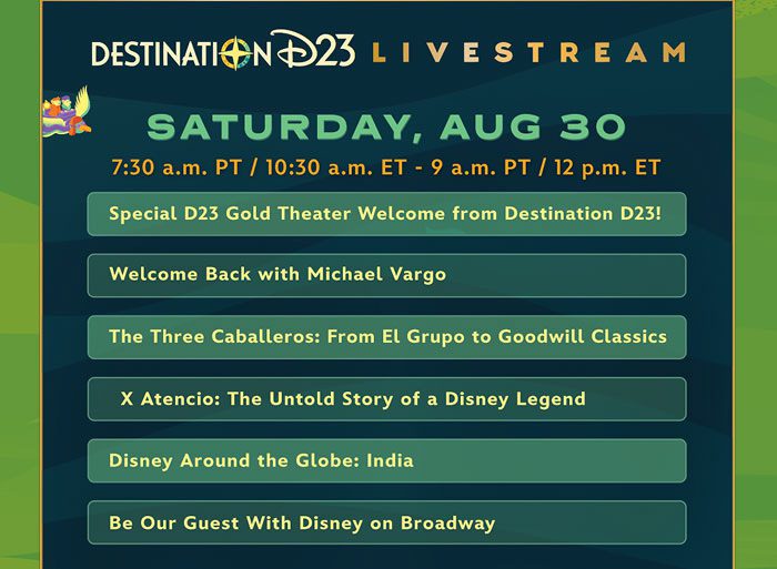 The schedule for Destination D23 can be accessed here. For the most up-to-date information, please download the Disney D23 app, available for iOS and Android devices on the App Store or the Google Play Store.