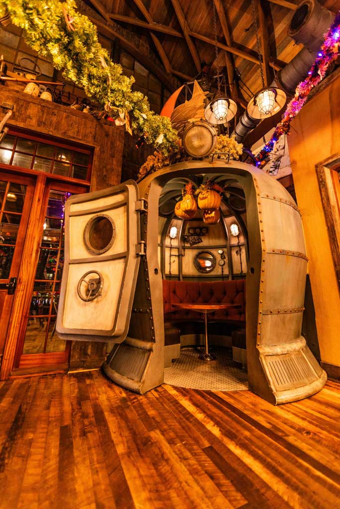 For those with the tricky luck of dining in the diving bell, you’ve got company. A patch of Jack-O’-lanterns has taken up residence above your head, ready to flicker through the night.