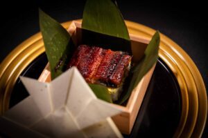 - Sea Bream: Kombu–cured Sakura style accented with edible gold leaf