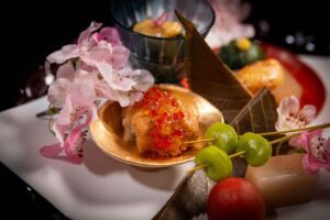 And with course three, we were treated to a truly spring-themed delight – the Spring Hanami Huassun Platter. This dish was adorned with cherry blossoms that truly embodied the season. The small bites included in this platter on the omnivorous menu are: