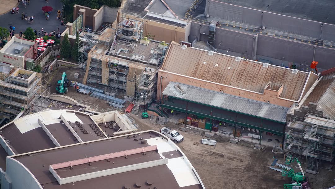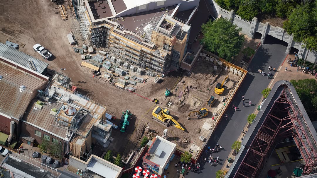 In the long list of great Pixar films, Monsters Inc. is one of my favorites. I can’t wait for the new Monsters Inc Land to open at Disney’s Hollywood Studios. I’m especially excited for the flying door coaster which looks so cool in the concept art. Construction is coming along quickly and new aerial photos show much of the progress including the installation of the first structural pieces.